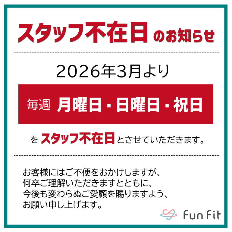スタッフ不在日のお知らせ
